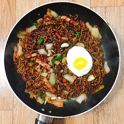 국민 짜장라면 "짜파게티"더 맛있게 먹어봅시다!! 오늘은 오랜 기간동안 변함없는 사랑을 받고 있는짜파게티를 조금 더 업그레이드해서 먹어봤어요. 먼저 완성된 짜파게티 한번 보고 가실까요. 으 사진으로 보니 침이 엄청 고이네요.또 먹고 싶습니다. 짜파게티를 끓일 때 야채와 베이컨을 곁들여만들어 봤어요.짜장면의 느낌을 생각하며 만들어보았습니다. 그럼 먼저 재료준비부터 해볼게요. 재료준비양파, 마늘, 고추(저는 꽈리고추 사용), 베이컨, 계란, 짜파게티, 고춧가루 양파는 짜장면에 들어간 것처럼 듬성듬성 썰었습니다.마늘과 꽈리고추는 기름낼 때 사용할 거라얇게얇게 썰어주었어요. 베이컨도 얇게얇게 썰어주었습니다.꼭 베이컨을 쓰실필요는 없는 것 같아요.짜장면처럼 돼지고기를 쓰면 더 맛있을듯 합니다. 짜파게티도 준비합니..